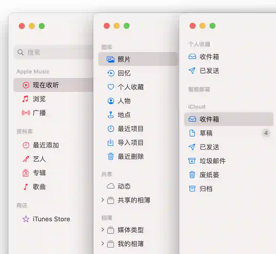 在 macOS Big Sur 和 iPadOS 14 上,多个系统应用统一了边栏(Sidebar)和工具栏(Toolbar)的设计语言来承担相应职能。
