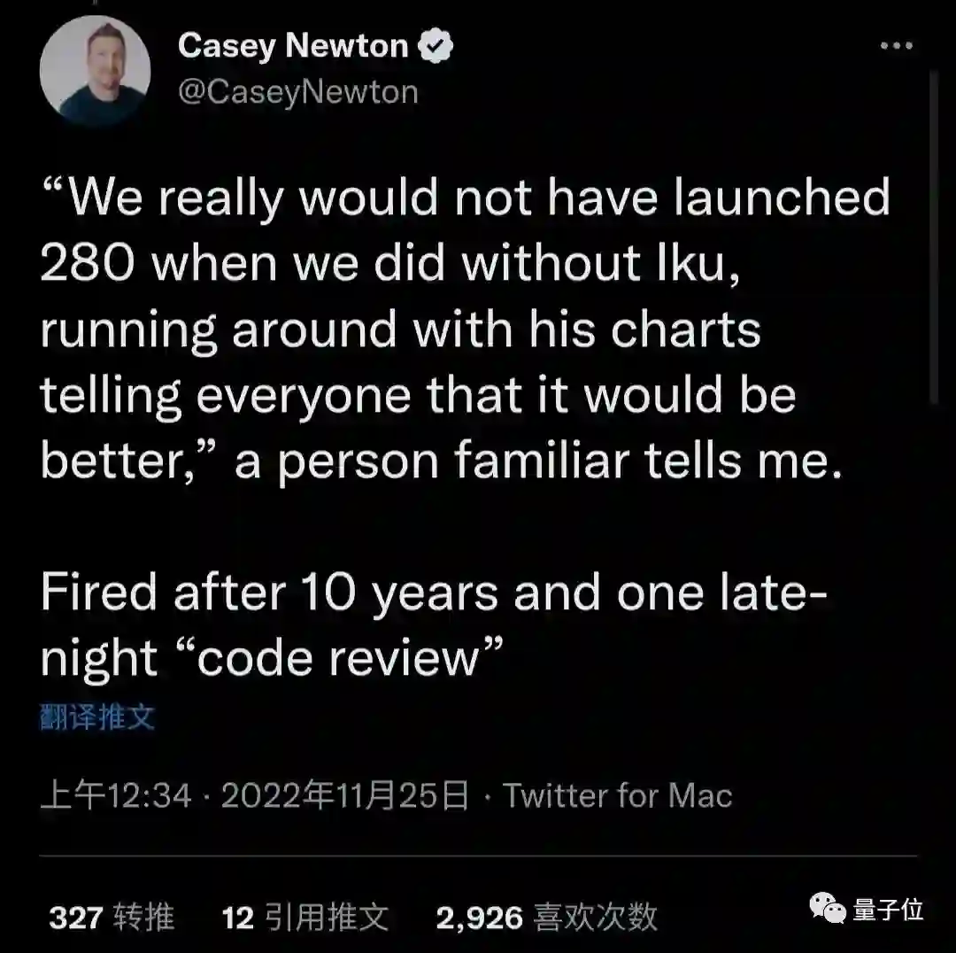据Platformer消息,这次被解雇的员工当中,还有一位地位很高的高级工程师Ikuhiro Ihara,他曾领导推动将推文扩展到280个字符。