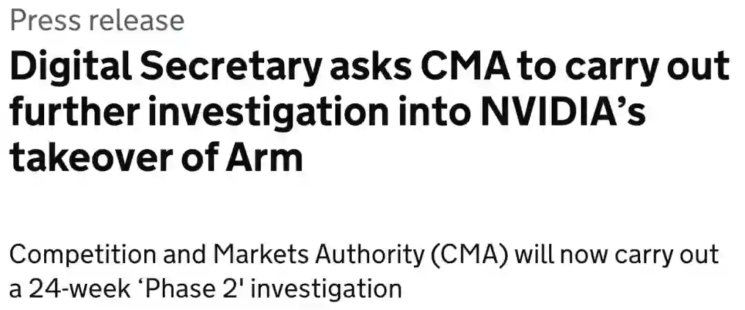 2021年8月,英国完成了第一阶段的调查,并发表声明称英伟达收购Arm引发了严重的竞争问题。