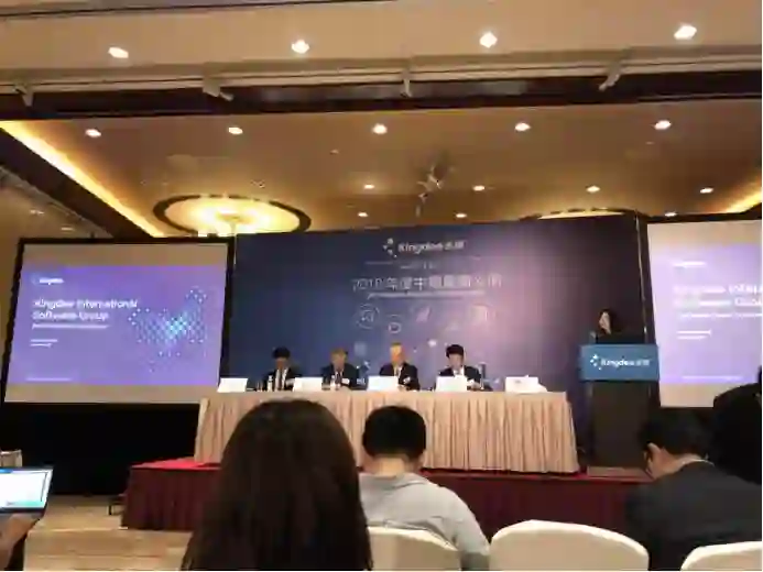 2018年8月16日上午,金蝶国际(00268.HK)发布2018年中期业绩会,董事会主席徐少春先生、首席财务官林波先生等集团高管出席会议。