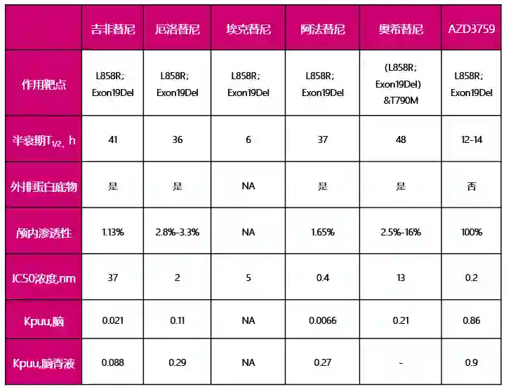 不同EGFR-TKI药物临床前研究数据汇总
