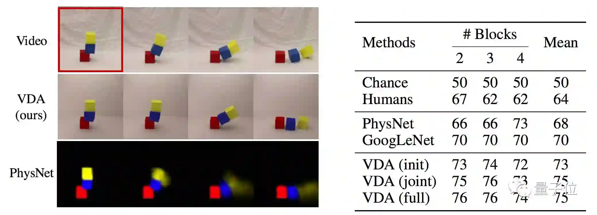 其一,是估计台球的运行速度,并据此预测台球(们)发生撞击后,后续的运动情况。其二,是分析堆叠的方块静态图,并据此判断这堆方块是否会掉落,以及会落在何处?
