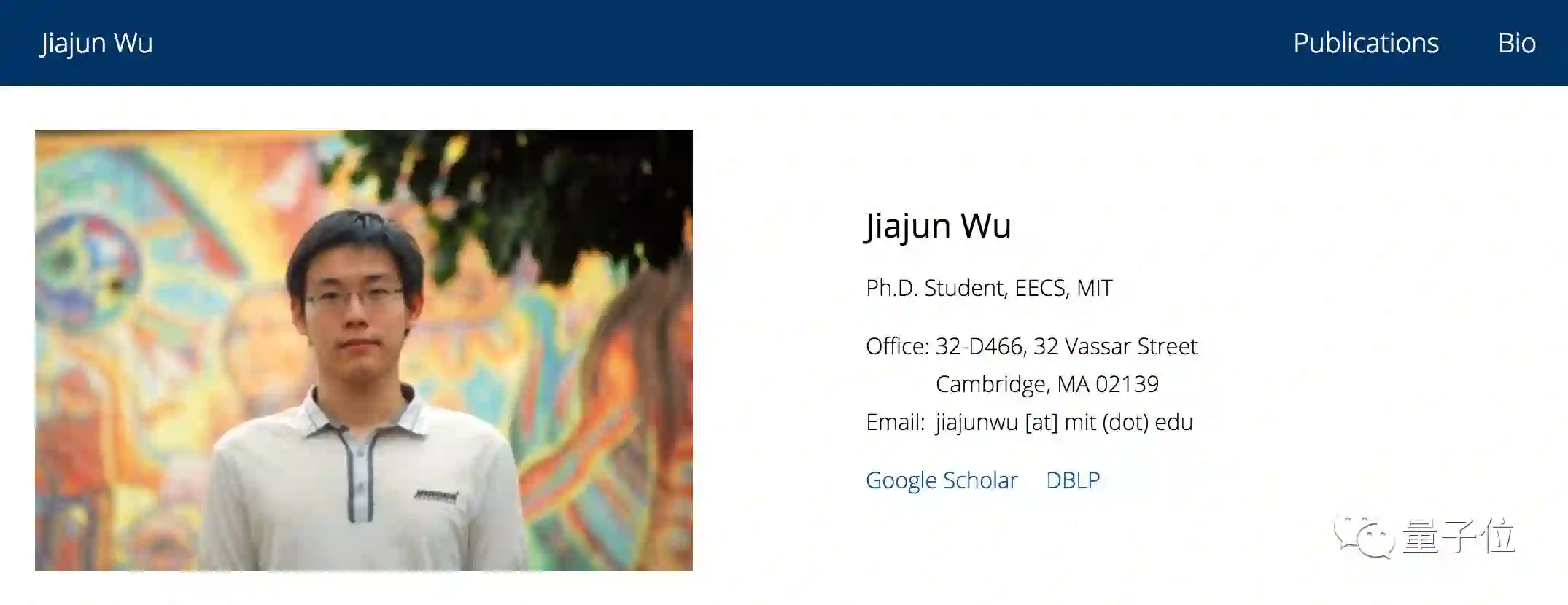 前面已经提到,吴佳俊现在是MIT的博士生。他的导师是Bill Freeman教授Josh Tenenbaum教授。吴佳俊的研究方向主要为计算机视觉、机器学习和计算认知科学。