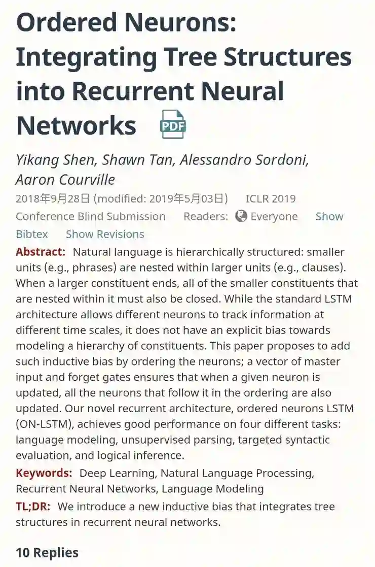 来自加拿大蒙特利尔大学、微软蒙特利尔研究院的「Ordered Neurons: Integrating Tree Structures into Recurrent Neural Networks」