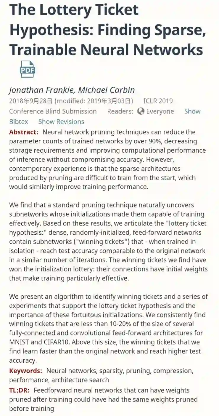 来自 MIT CSAIL 的「The Lottery Ticket Hypothesis: Finding Sparse, Trainable Neural Networks」。