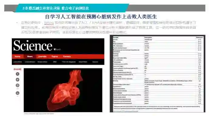 最后比较有意思的是,我们需要多模态的融合和复杂决策。我也看到一些希望,最近一篇文章通过比较挖掘电子病历,用机器学习的方法可以较好的预测心脏病发作,所以在未来我们有办法把各个成像模式跟电子病历的融合。
