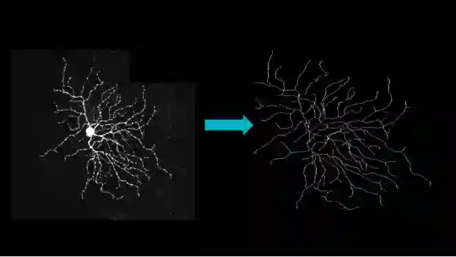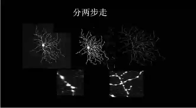 这是我做博士后期间我们开始进行的尝试,神经元图片想把它变成右边这样,然后就能分型研究,本质是一个分割问题。