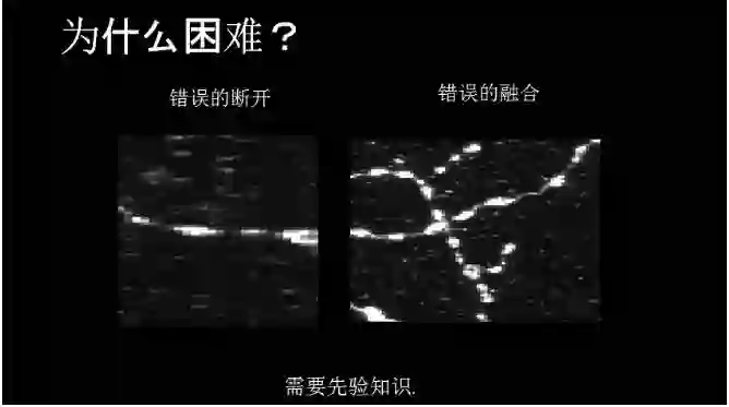 为什么困难?它难的地方在哪里?主要是因为成像的原因,有时候会断开,有时候会连起来。