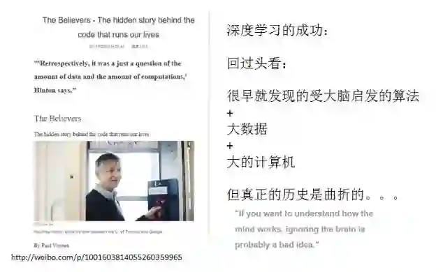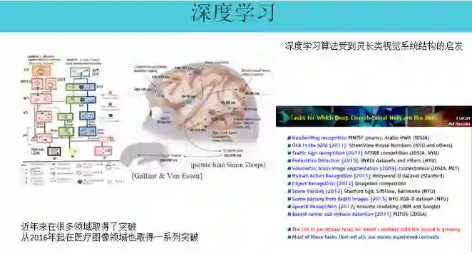 大家听的比较多的所谓深度学习,从类脑人工智能的角度来看,是受到灵长类视觉结构的启发。左边那张图,视觉系统有很多层,所以这是为什么叫深度学习。
