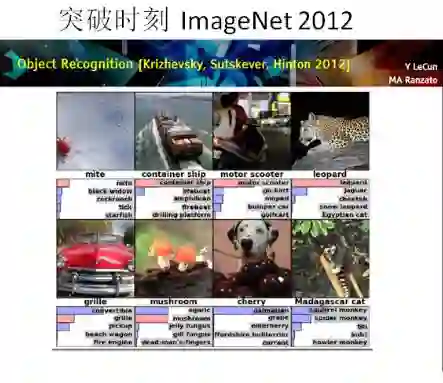 大家可能知道深度学习突破是2012年。有一个比赛,从网上找到了大量图片,给它们进行标注,然后让机器去学习,看能不能学出来。前几年准确率都还挺低,后来用深度学习的方法直接一下提升了几十个百分点,从这个以后深度学习变得非常热门。