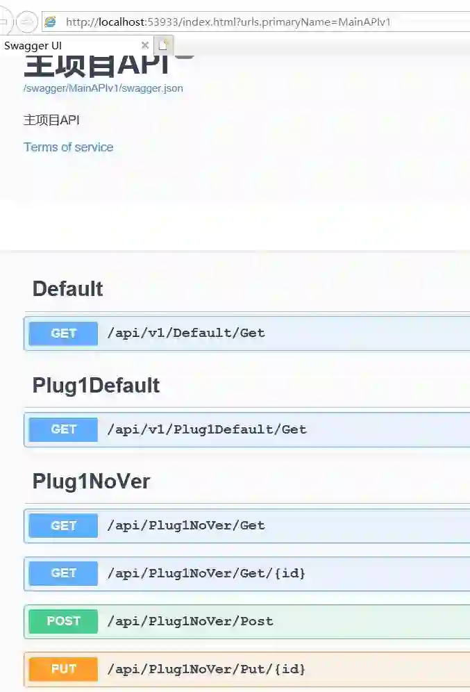 这里作为插件API项目同样有一点要注意,不要出现和其他插件或者主项目同名的路由(version,controller,action三个完全一样,分工之后各自命名规范估计这种情况也不会出现,主要还是注意避免合并之后路由重名问题)。