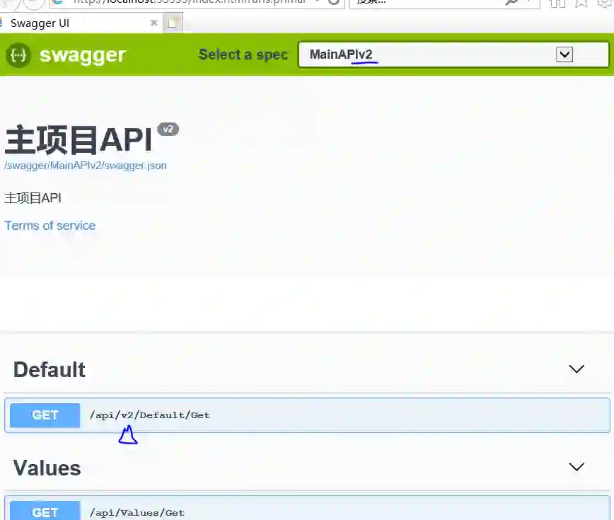 搭建好之后,主项目运行,选择v1版本显示如图7