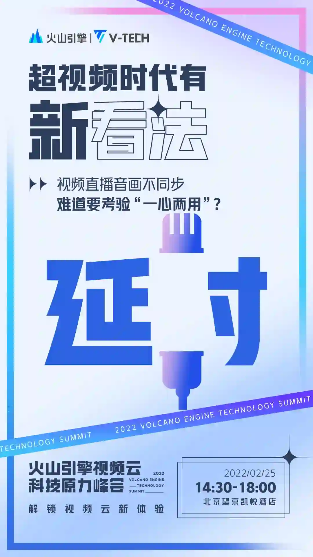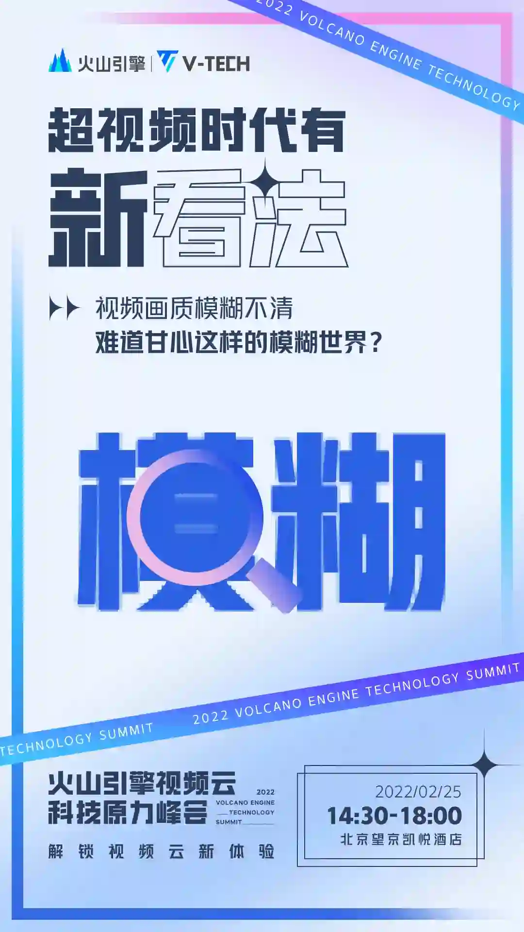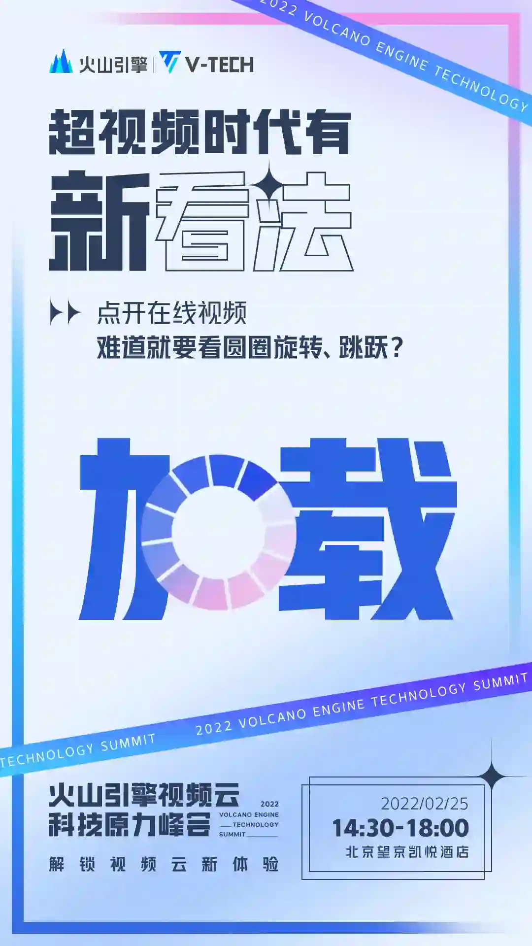 2 月 25 日,火山引擎将在北京举办视频云科技原力峰会,全面解读视频云行业技术趋势和演进方向,首次系统分享对于视频云核心场景的观察和思考,发布面向体验的全新视频云产品矩阵,结合行业具体案例探讨超视频时代视频云商业场景新价值。