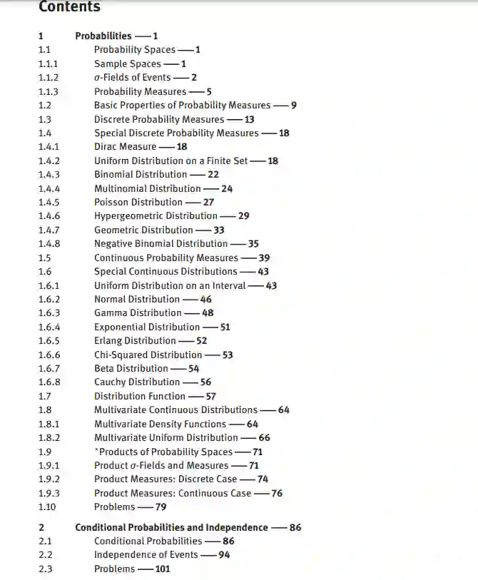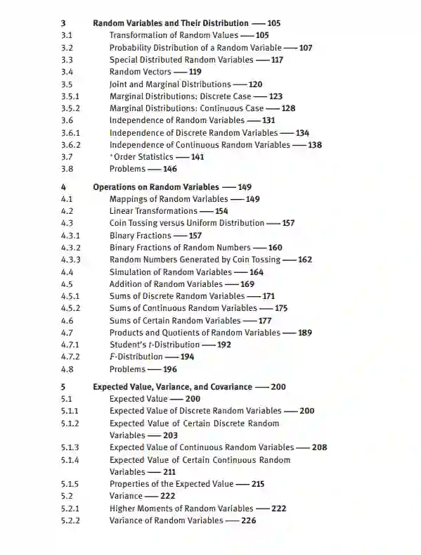 本书旨在为数学、物理科学、工程和相关领域的学生介绍概率论和数理统计。它基于作者25年的概率教学经验,旨在帮助学生克服学习该学科的常见困难。这本书的重点是对理论的解释,主要是用了许多例子。在可能的情况下,提供所述结果的证明。所有章节都以一个简短的问题列表结束。这本书还包括几个可选的更高级的主题部分。这本教科书非常适合概率论的第一课。内容:概率、条件概率和独立随机变量及其分布、随机变量的运算、期望值、方差和协方差、随机分布向量、极限定理、数理统计附录书目索引。