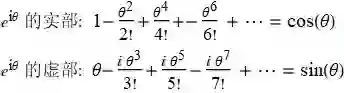 展开后整理实部系数和虚部系数, 可以推出欧拉等式 eiθ=cos(θ)+i sin(θ)