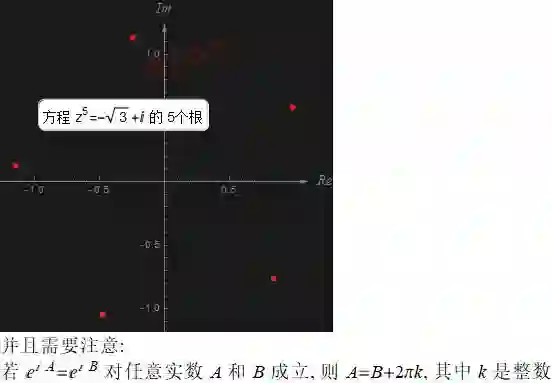 的方程, 其中 n 是整数, w 为复数. 这意味着要取 w 的 n 次方根. 使用极坐标形式的幂次来进行求解.