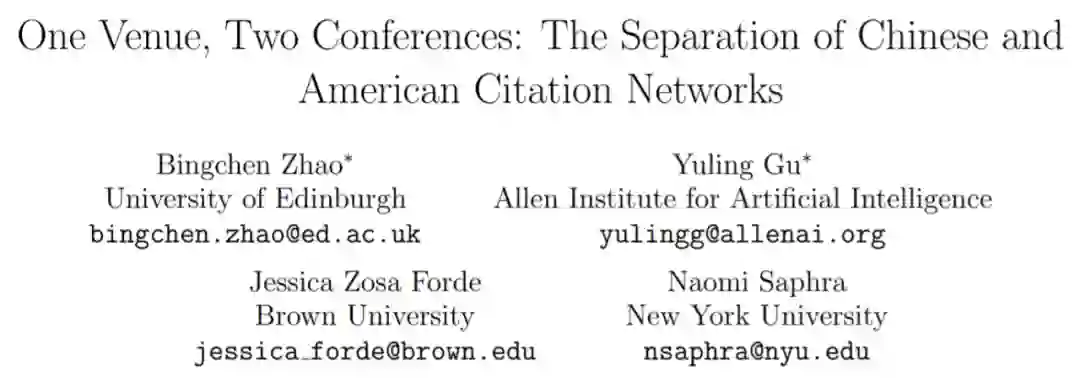 本文中,来自爱丁堡大学以及艾伦人工智能研究所等机构的研究人员,对中国研究人员和美国研究人员之间的差异进行了探索。研究中他们采用了 NeurIPS 引用数据,以此来分析美国和中国机构对学术研究的影响。结果发现中国机构对美国和欧洲的论文引用很少(under-cite),而美国和欧洲机构对中国的论文引用也很少。