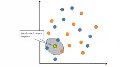 通过在整个数据集中搜索K个最相似的样本,并将这些输出变量进行汇总来预测新的数据点。对于回归问题,这可能是平均输出变量,对于分类问题,这可能是模式(或最常见的)类值。