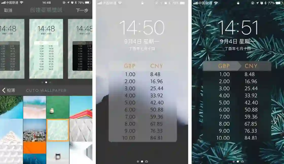 你可以在 App Store 免费下载 Elk,生成汇率锁屏壁纸功能需要付费内购(25 元),付费功能提供 14 天的免费试用期,你可以尝试一下。