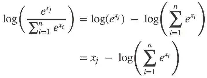 我们什么时候会见到这样的式子?常见的一个地方是计算softmax函数的交叉熵损失。如果这听起来冗长难解,那么:1) 习惯一下,ML中太多东西有着疯狂的名字;2) 直接意识到这没什么复杂的。有必要的话可以看看斯坦福cs231n的出色讲解,或者,就本文而言,只需了解softmax是这样一个函数就可以: