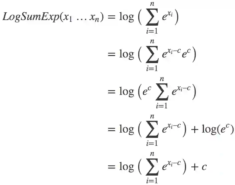 LogSumExp是一个巧妙的窍门,分解了它的机制后,实际上相当容易理解。一旦了解了LogSumExp和数值稳定性问题,你就不会感到一些库的文档和源代码难以理解了。