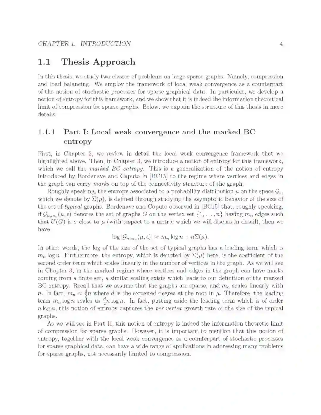 在本论文中,我们研究了两类涉及大规模稀疏图的问题,即图数据的压缩问题和网络中的负载均衡问题。我们利用局部弱收敛的框架,或所谓的目标方法来实现这一点。这个框架提供了一个观点,使人们能够理解稀疏图的平稳随机过程的概念。