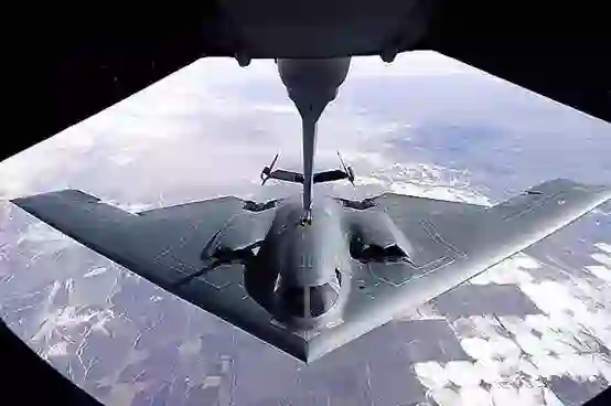 美军B-2隐形轰炸机空中加油