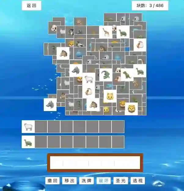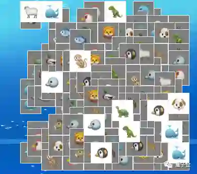 先根据全局参数计算总块数,游戏难度越高,块数和相应层数也越多,然后作者用shuffle函数打乱存储所有动物图案的数组,再依次,把图案重新填充到方块中。