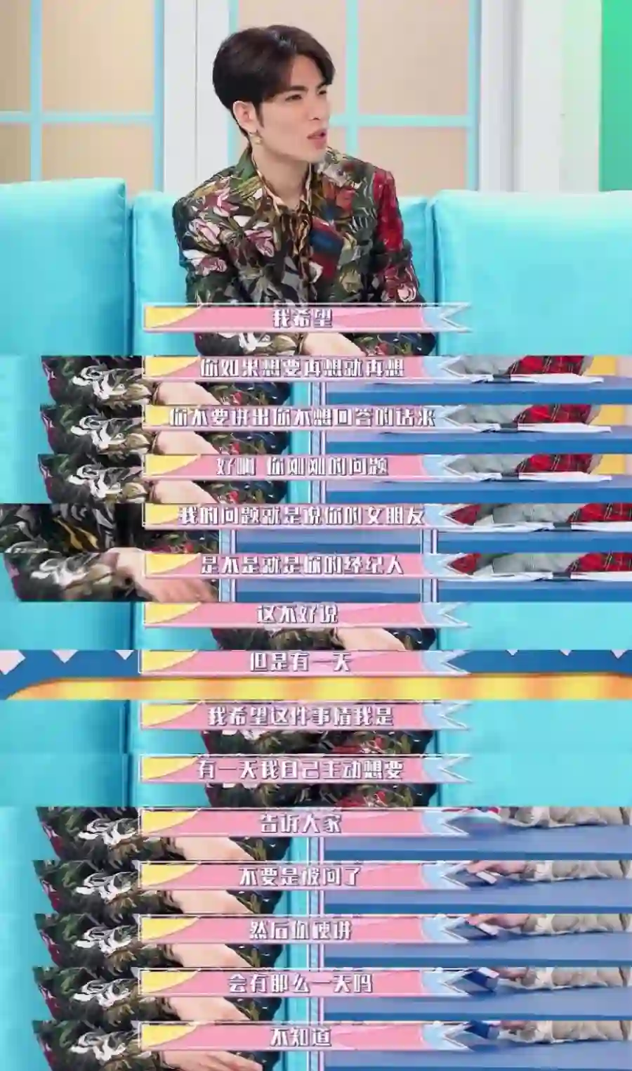 被小S突然问起“你的女朋友就是你经纪人吧”,萧敬腾经过两分钟的沉默后回答,希望有一天可以自己来公开这段关系,而不是被别人提问。而大陆演员乔欣被追问“单身超过半年了吗?”“手边有几个可能的人选?”“追你的人很多?”“有人照顾你,但你还没有定下来的心情吗?”,则会瞬间呆滞——“怎么办,我喜欢看康熙,喜欢看你们搞别人,但是我……我不喜欢。”用蔡康永的话来说,“两眼无神地望向远方的经纪人,空气突然凝固的感觉”。