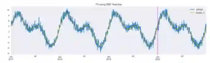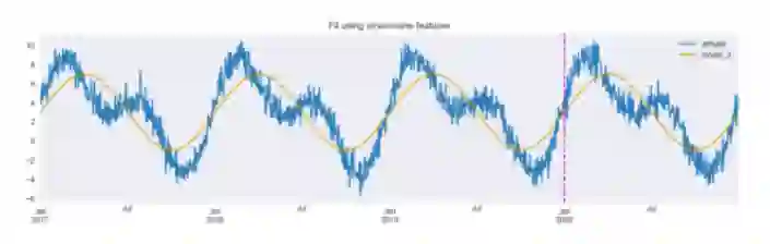 图 5:使用正弦/余弦变换拟合。垂直线将训练集和测试集分开。