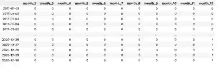 X_1 = pd.DataFrame(data=pd.get_dummies(X.index.month, drop_first=True, prefix="month"))