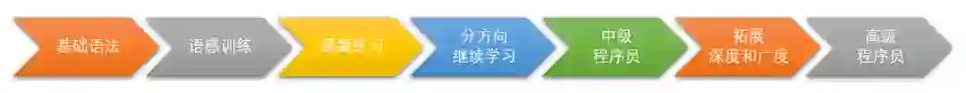 当下是一个喧嚣、浮躁的时代。我们总是被生活中大量涌现的热点所吸引,几乎没有深度阅读和思考的时间和机会。我始终认为,学习是需要沉下心来慢慢钻研的,是长期的;同时,学习不应该被赋予太多的功利色彩。一个 Python 程序员的成长路线图应该是这样子的:基础语法–>语感训练–>课题练习–>分方向继续学习–>中级程序员–>拓展深度和广度–>高级程序员。