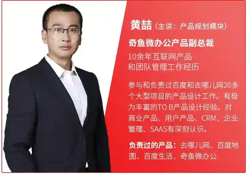 奇鱼微办公产品副总裁、原去哪儿用户体验总监、百度产品负责人@黄喆老师