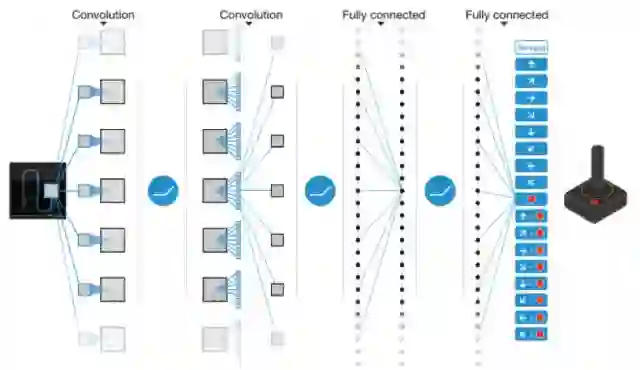 DeepMind提出了一种用深度Q解决Atari游戏的方法,使用卷积神经网络拟合Q函数,称为深度Q网络(简称DQN)。网络的输入为经过处理后游戏图像画面,原始的画面是210x160的彩色图像,每个像素的值为[0, 255]之间的整数,所有可能的状态数为: