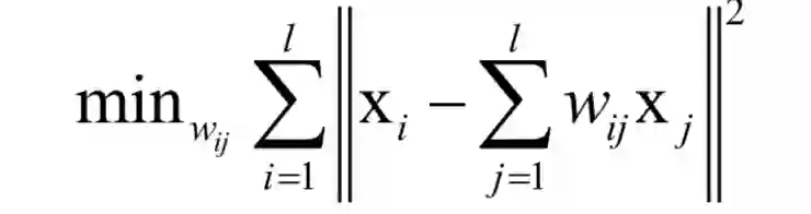 每个数据点和它的邻居位于或者接近于流形的一个局部线性片段上,即可以用它邻居点的线性组合来重构,组合系数刻画了这些局部面片的几何特性: