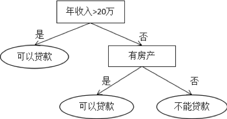 决策树是基于规则的方法,它用一组嵌套的规则进行预测,在树的每个决策节点处,根据判断结果进入一个分支,反复执行这种操作直到到达叶子节点,得到决策结果。决策树的这些规则通过训练得到,而不是人工制定的。下图是决策树的一个例子: