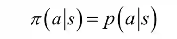 这是确定性策略。对于确定性策略,在每种状态下智能体要执行的动作是唯一的。另外还有随机性策略,智能体在一种状态下可以执行的动作有多种,策略函数给出的是执行每种动作的概率: