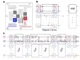 几乎是在同一时间,Havlíček 等人和 Maria Schuld 的研究团队意识到机器学习和量子计算之间可能存在密切联系。值得注意的是,两个团队提出了本质相同的两种策略,即设计用于机器学习的量子算法。第一种策略仅能实现量子计算机的最小使用,将其作为常规机器学习系统的硬件补充:当给定两个数据点时,量子设备返回相似性。第二种策略是在量子计算机上执行实际学习,经典计算机作为辅助。