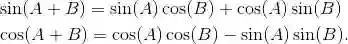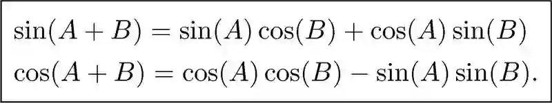 最后, 还有一组恒等式值得我们学习. 这些恒等式涉及角的和与倍角公式. 特别地, 我们应该记住下列公式: