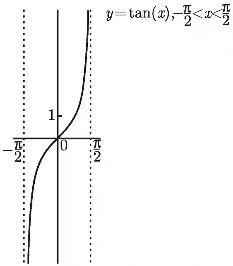 现在, y = tan (x) 略有不同. 最好是先画出 x 介于 -π/2 到 π/2 的图像, 如图 2-18 所示.