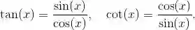 三角函数间的关系用来十分方便. 首先, 注意到正切和余切可以由正弦和余弦来表示: