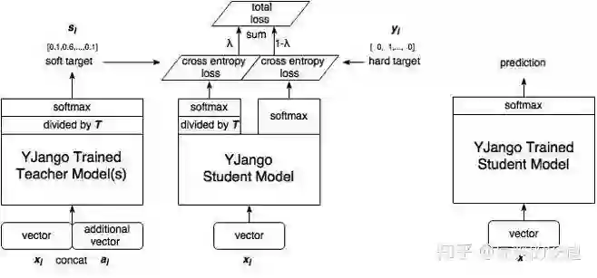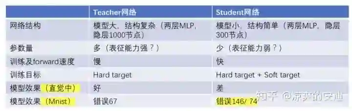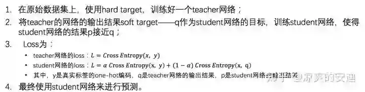 Student:新的较小的模型,接收teacher的知识,训练后用于前向预测