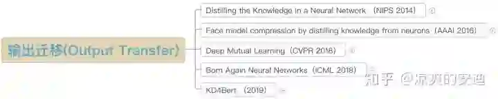Output Transfer——将网络的输出(Soft-target,后面会介绍其含义)作为知识。在该部分,将主要介绍以下几篇paper。