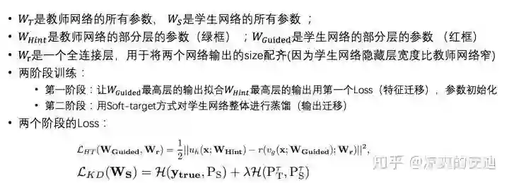 学生网络不仅仅拟合教师网络的soft-target,而且拟合隐藏层的输出(教师抽取的特征);