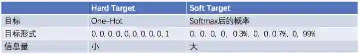 Soft target :Teacher输出的预测结果(一般是softmax之后的概率)