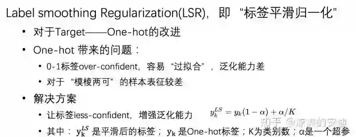 What's more,关于软目标相关的思考,还有Label smoothing Regularization(LSR),即“标签平滑归一化”。LSR也是对“硬目标”的优化: