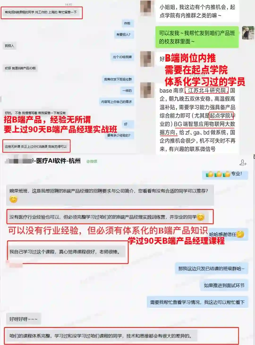 求职找工作也更多一些机会哟,各个一二线城市企业招聘也会优先选择学习过《90天B端产品经理班》的同学。
