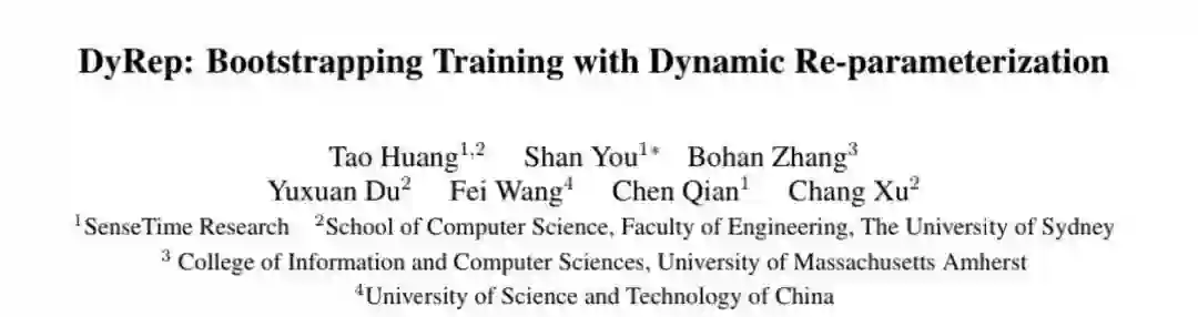 已有的方案均是对所有操作通过重参数机制进行结构增广,这种“静态”处理机制会导致了昂贵的训练代价。为解决该问题,本文设计了一种DyRep(Dynamic Re-parameterization)方案以最小代价引导训练,DyRep将重参数技术编码到训练过程中对网络结构进行动态进化。相比“静态”重参数机制,本文所提DyRep效率更高:它可以对给定网络平滑进化而非构建一个过参数化网络。DyRep可以提升ResNet18的性能达2.04%,同时训练耗时降低22%。