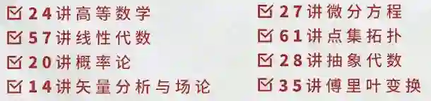本系列课程全面覆盖基础数学学科的各专业、计算机科学、概率统计、金融学等与数学相关的或交叉的、高新技术学科的数学知识点。