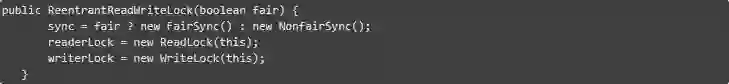 并且从ReentrantReadWriteLock的构造函数中可以发现ReadLock与WriteLock使用的是同一个Sync,具体怎么实现同一个队列既可以为共享锁,又可以表示排他锁下文会具体分析。